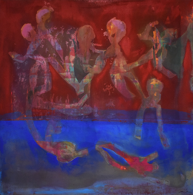 Azul rojo 2014 – 120×120 cms – Abstracto – Mix canvas