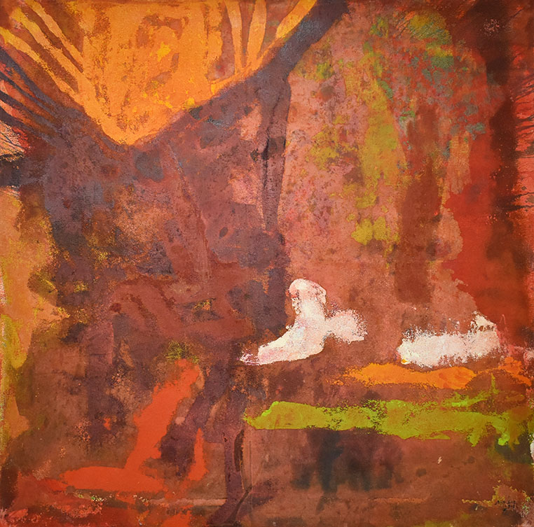 Sol rojo naranja – 2012 – 120×120 cms – Abstracto mix canvas