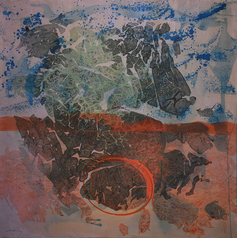 Naranja y azul 2023 – 140 x 140 cms – 2023 – Abstracto – Mix canvas
